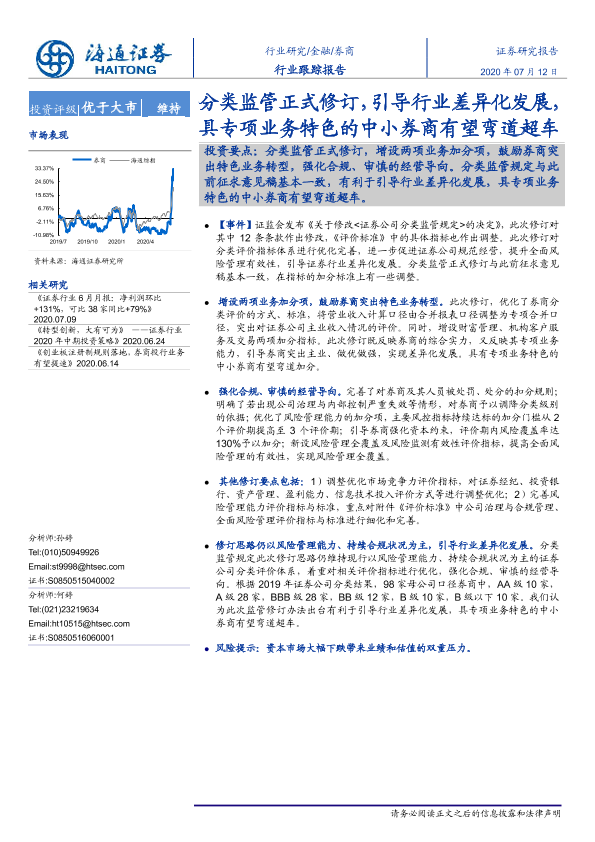 【海通证券】【20200712】券商行业跟踪报告:分类监管正式修订,引导行业差异化发展-3页