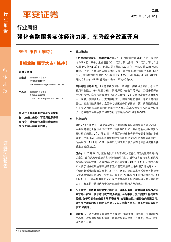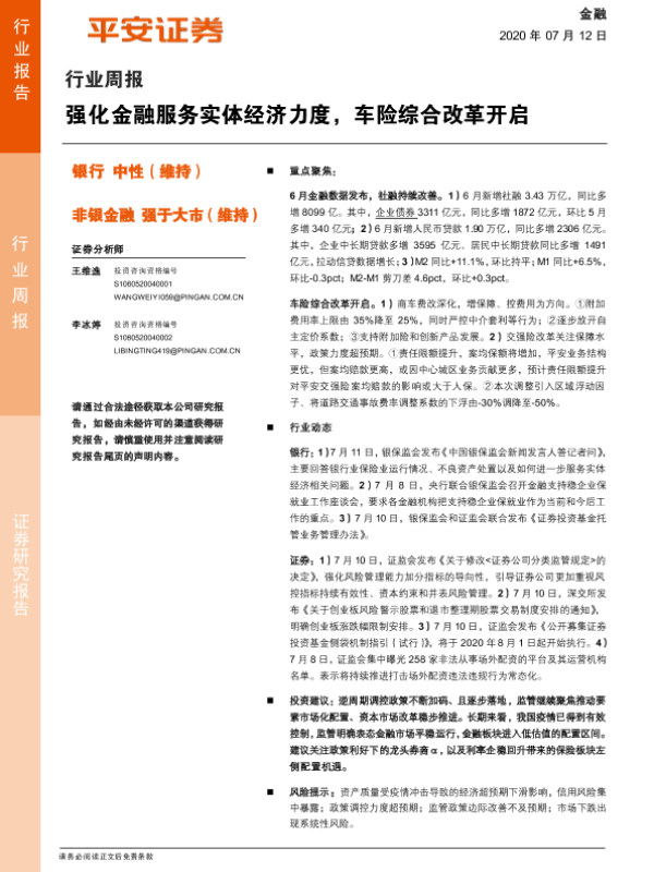 【平安证券】【20200712】强化金融服务实体经济力度,车险综合改革开启-10页