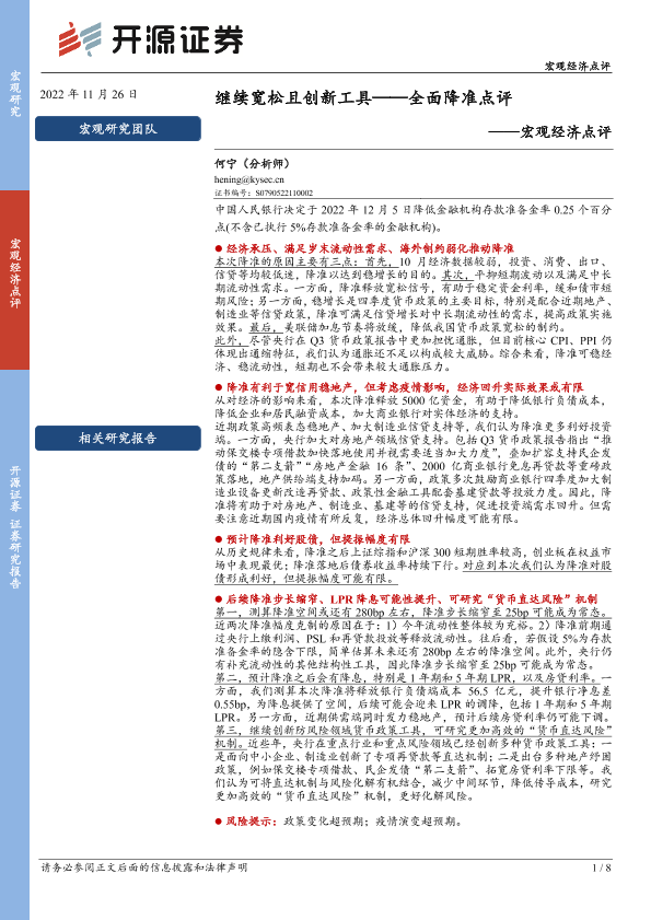 【开源证券】【20221129】继续宽松且创新工具——全面降准点评-8页