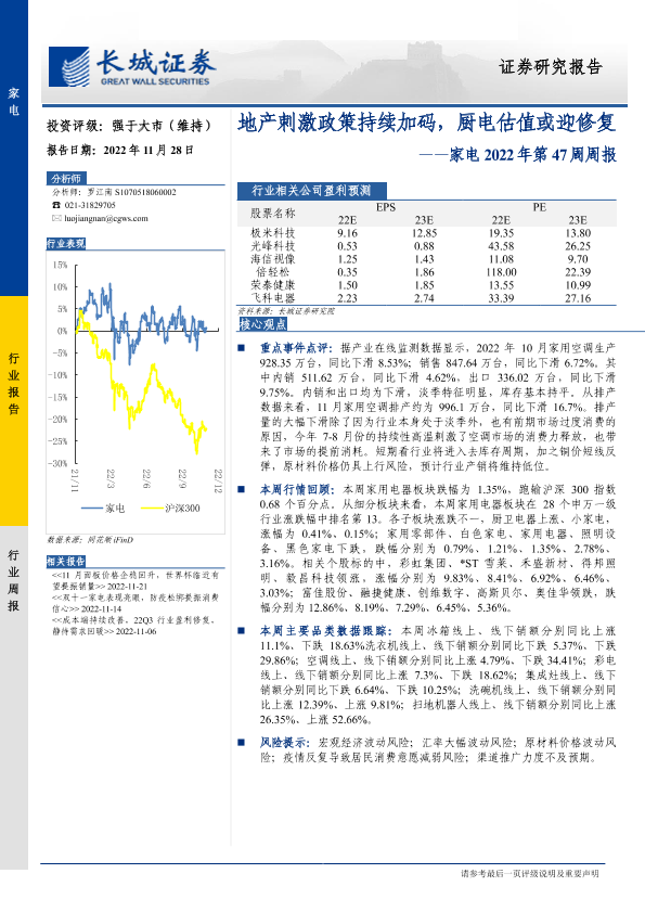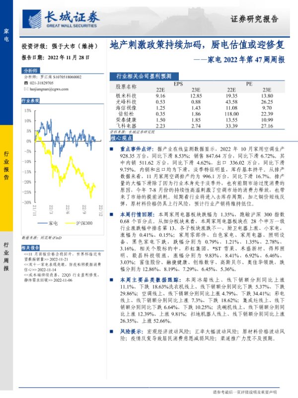【长城证券】【20221128】家电行业2022年第47周周报:地产刺激政策持续加码,厨电估值或迎修复-26页