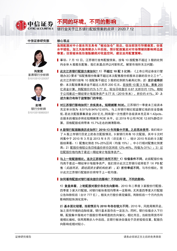 【中信证券】【20200712】关于江苏银行配股预案的点评:不同的环境,不同的影响-6页