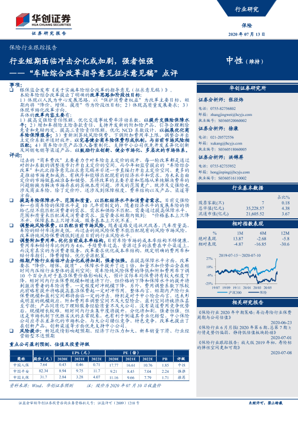 【华创证券】【20200713】保险行业跟踪报告:“车险综合改革指导意见征求意见稿”点评-7页