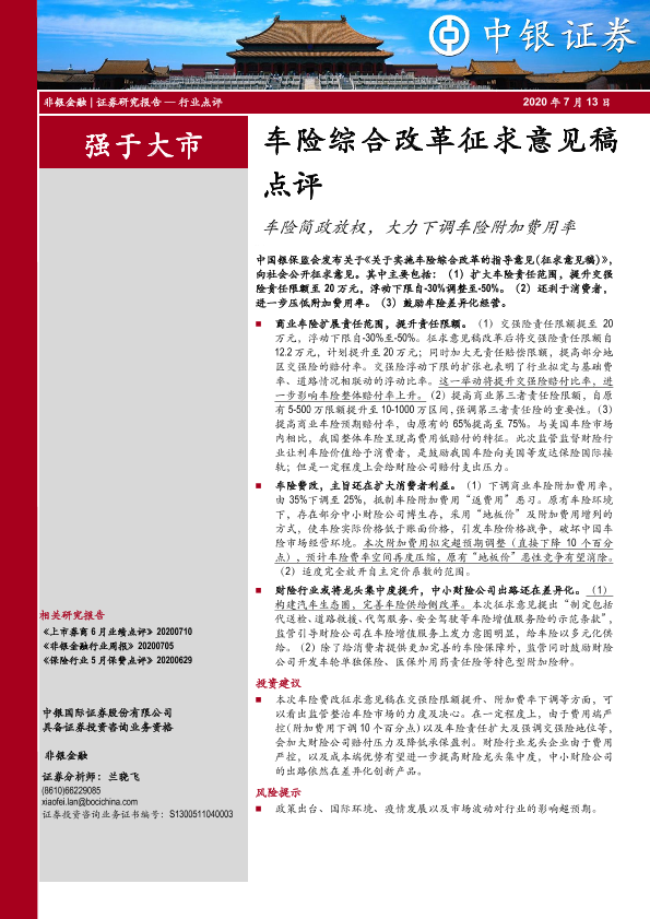 【中银证券】【20200713】非银金融:车险综合改革征求意见稿点评-5页