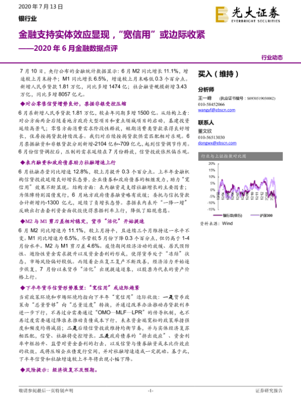 【光大证券】【20200713】银行业2020年6月金融数据点评-8页