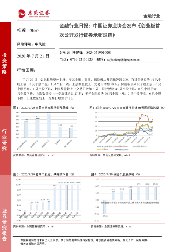【东莞证券】【20200721】金融行业日报:中国证券业协会发布《创业板首次公开发行证券承销规范》-4页