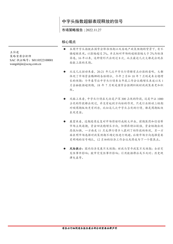 【首创证券】【20221127】市场策略报告:中字头指数超额表现释放的信号-16页