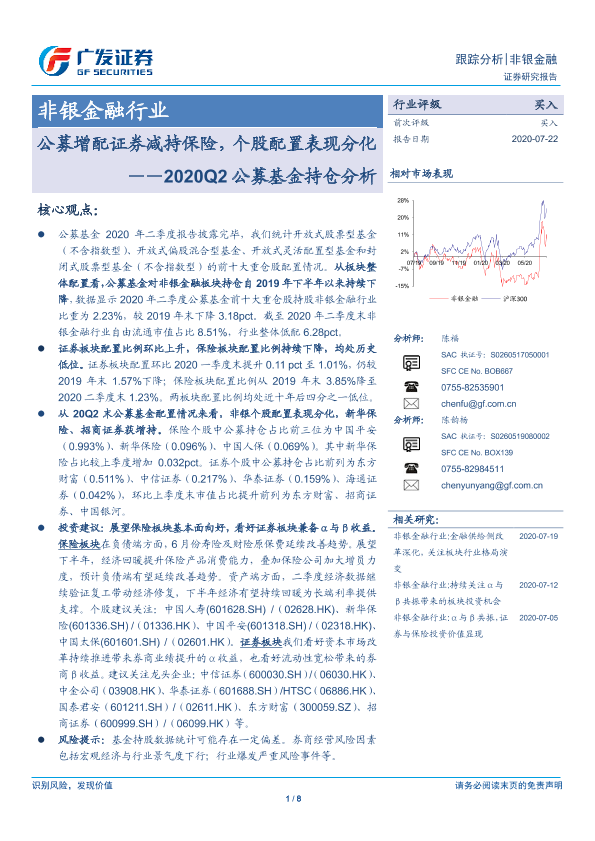 【广发证券】【20200722】2020Q2公募基金持仓分析-公募增配证券减持保险,个股配置表现分化-8页
