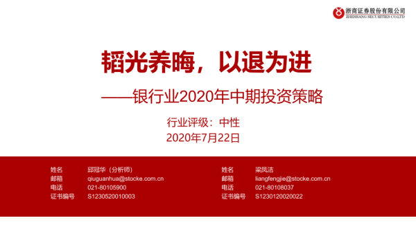 【浙商证券】【20200722】银行业2020年中期投资策略:韬光养晦,以退为进-26页