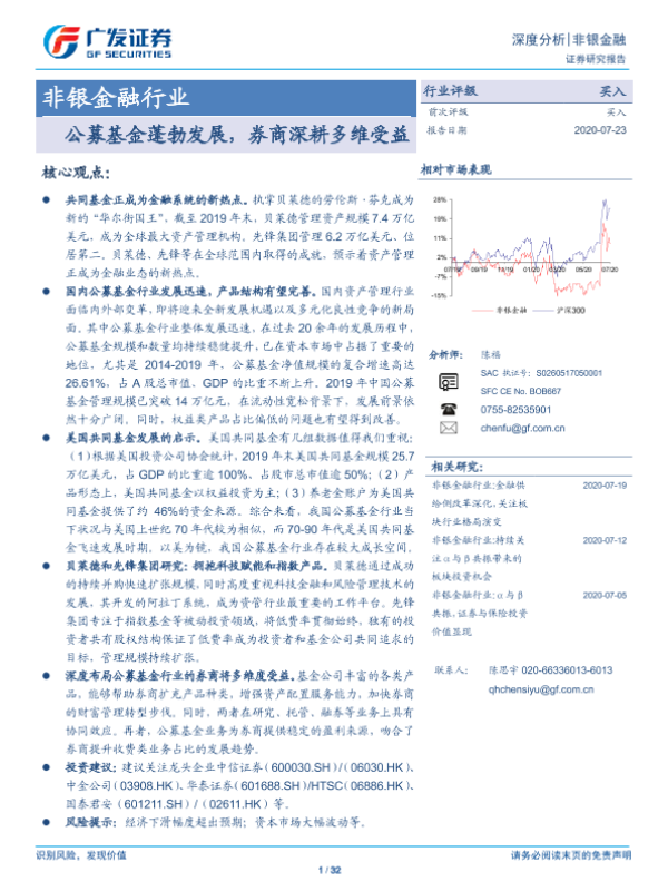 【广发证券】【20200723】非银金融行业深度分析:公募基金蓬勃发展,券商深耕多维受益-32页