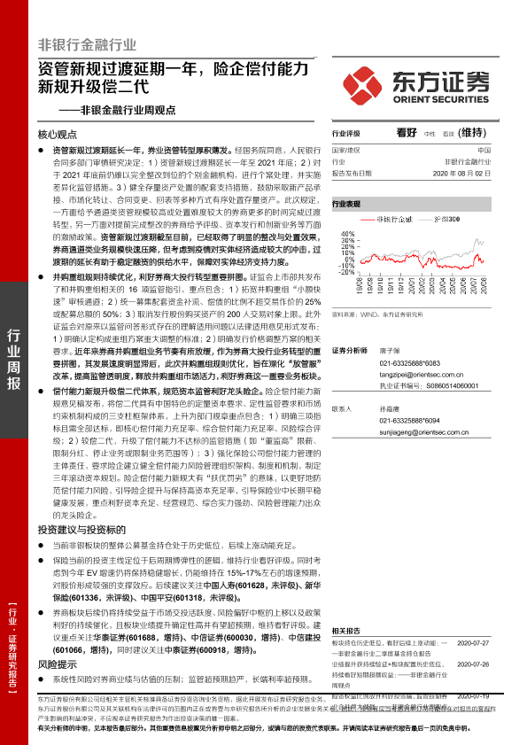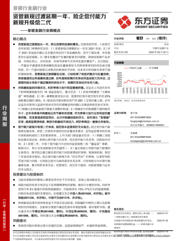 【东方证券】【20200802】非银行金融行业周观点:资管新规过渡延期一年,险企偿付能力新规升级偿二代-12页