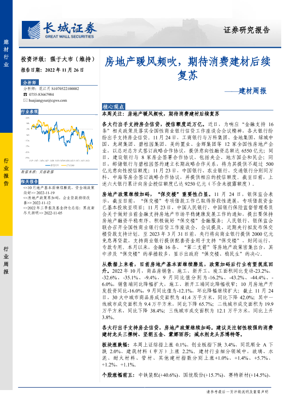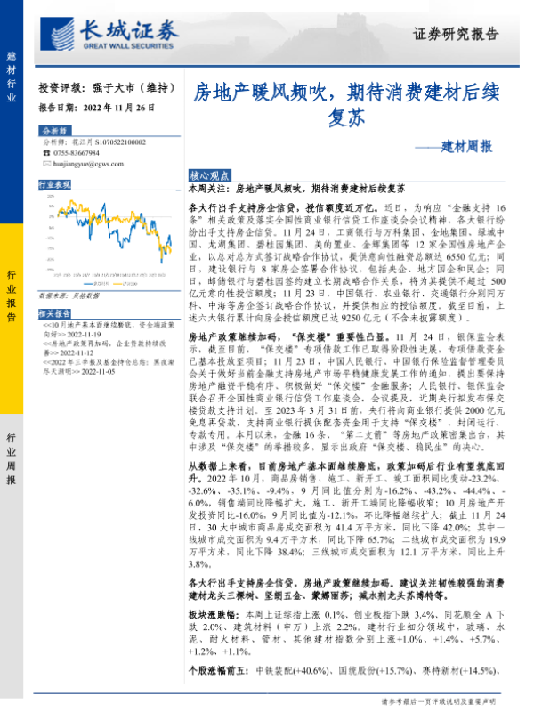 【长城证券】【20221126】建材行业周报:房地产暖风频吹,期待消费建材后续复苏-21页