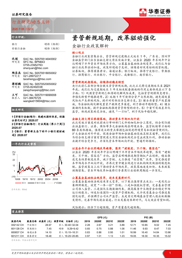 【华泰证券】【20200802】金融行业政策解析:资管新规延期,改革驱动强化-12页