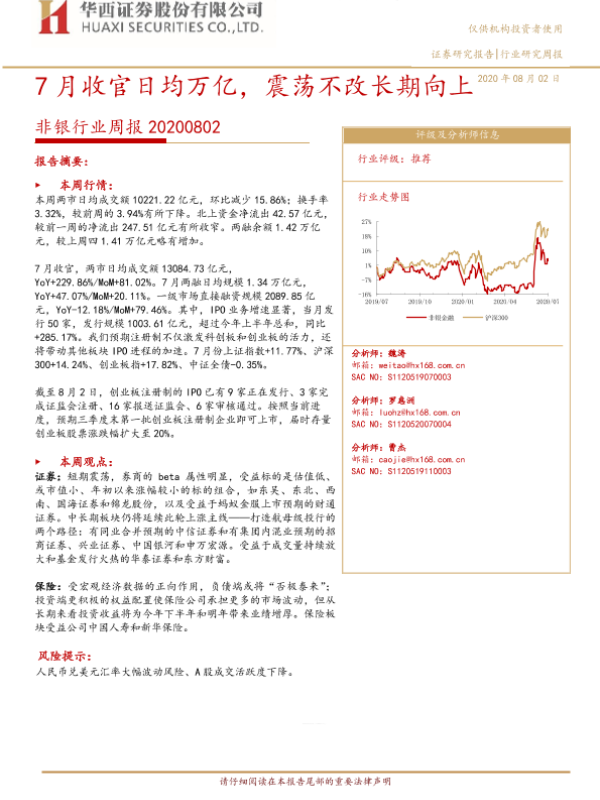 【华西证券】【20200802】非银行业周报:7月收官日均万亿,震荡不改长期向上-13页