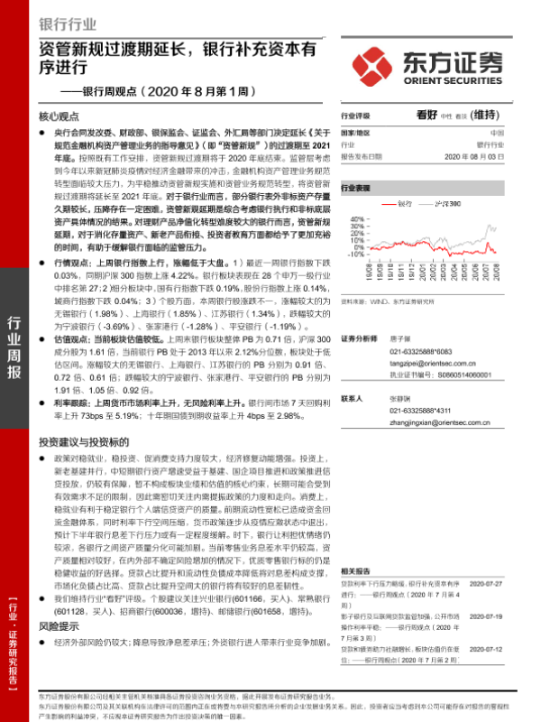 【东方证券】【20200803】银行周观点:资管新规过渡期延长,银行补充资本有序进行-14页