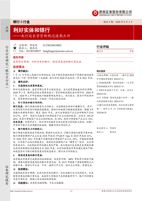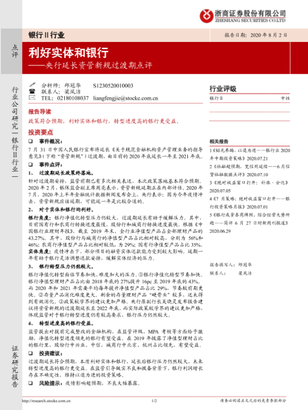 【浙商证券】【20200802】央行延长资管新规过渡期点评:利好实体和银行-2页
