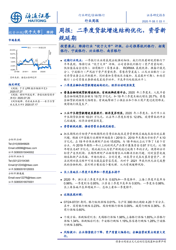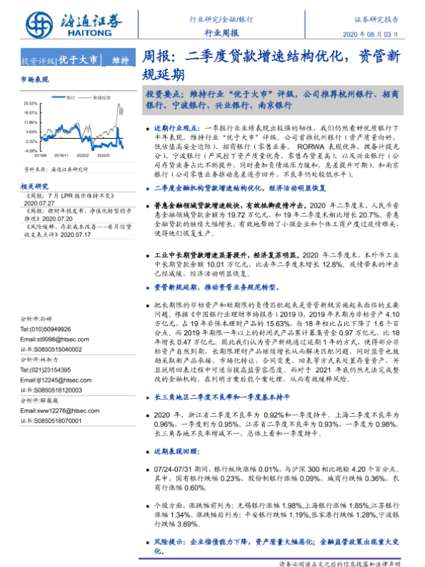 【海通证券】【20200803】二季度贷款增速结构优化,资管新规延期-8页