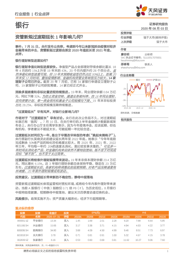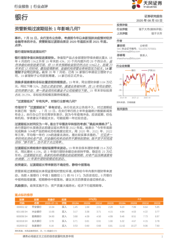 【天风证券】【20200803】银行行业点评:资管新规过渡期延长1年影响几何?-4页