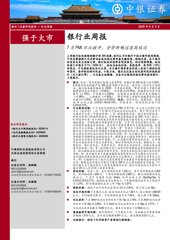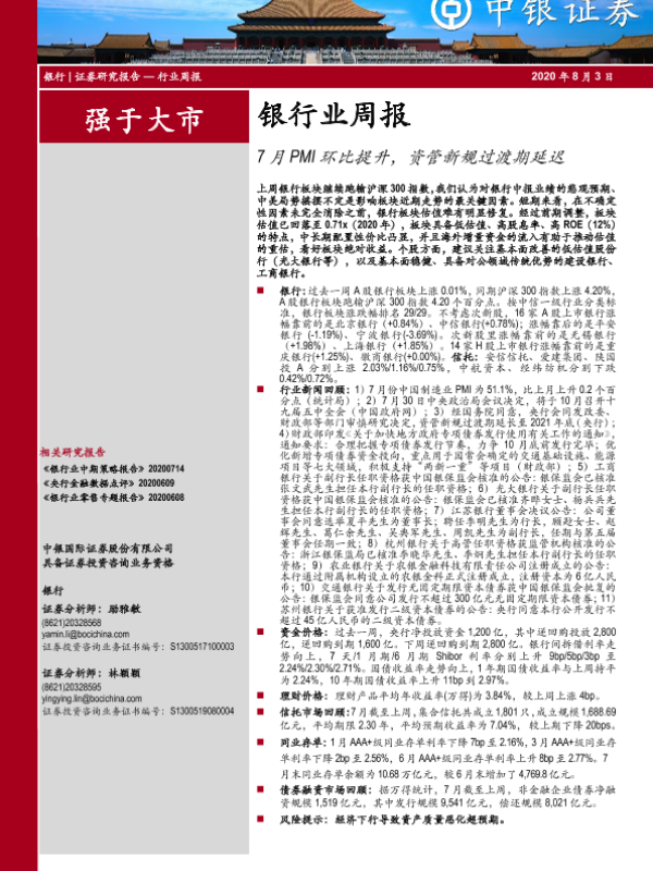 【中银证券】【20200803】7月PMI环比提升,资管新规过渡期延迟-16页
