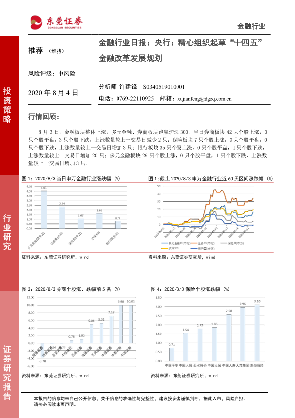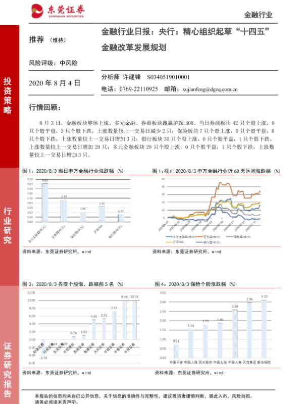 【东莞证券】【20200804】金融行业日报:央行:精心组织起草‘十四五’金融改革发展规划-4页