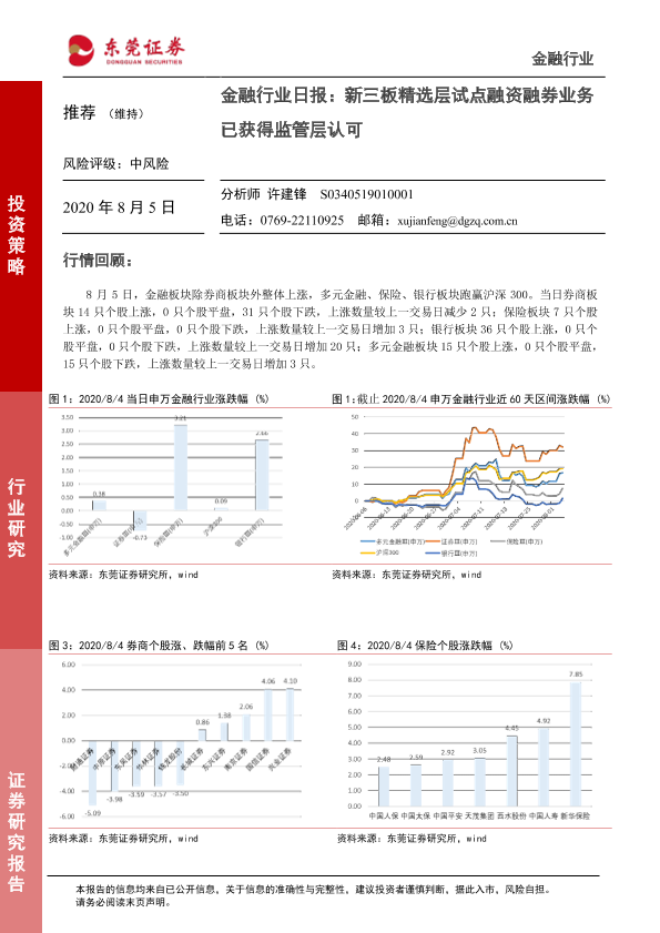 【东莞证券】【20200805】金融行业日报:新三板精选层试点融资融券业务已获得监管层认可-4页