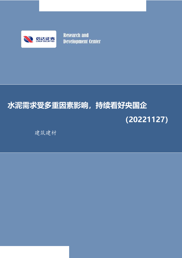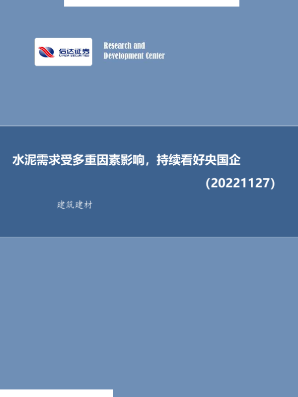 【信达证券】【20221127】建筑建材行业周报:水泥需求受多重因素影响,持续看好央国企-32页
