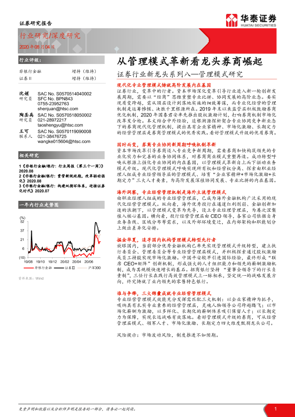【华泰证券】【20200804】证券行业新龙头系列八—管理模式研究:从管理模式革新看龙头券商崛起-36页