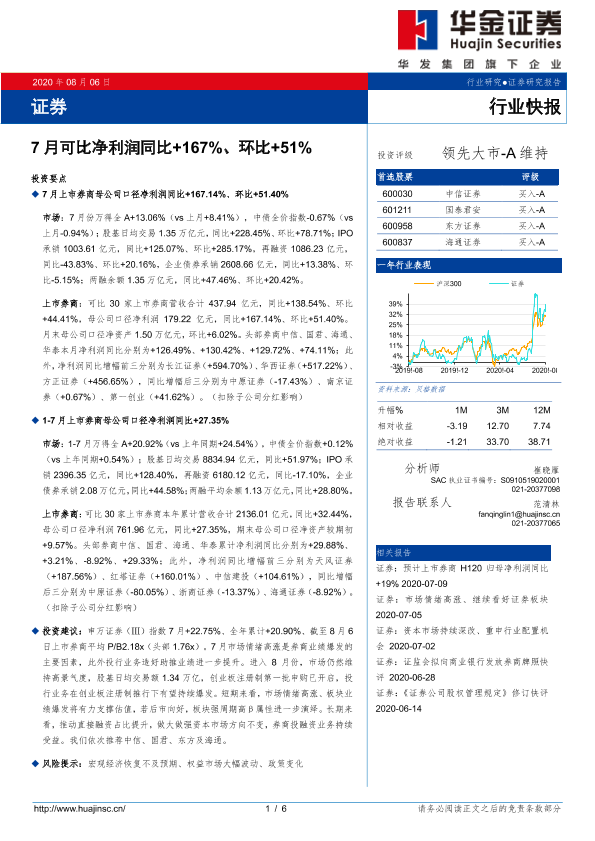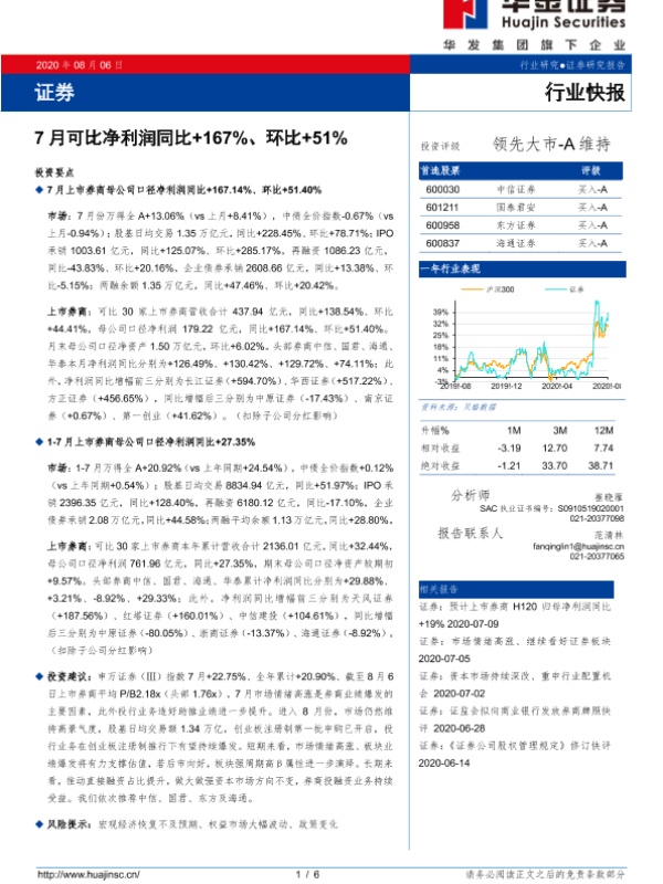 【华金证券】【20200806】证券行业快报:7月可比净利润同比+167%、环比+51%-6页