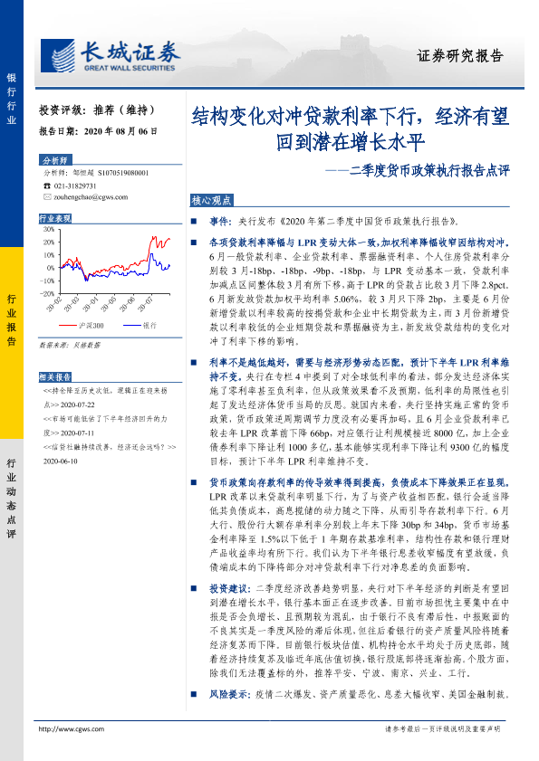 【长城证券】【20200806】二季度货币政策执行报告点评:结构变化对冲贷款利率下行,经济有望回到潜在增长水平-2页