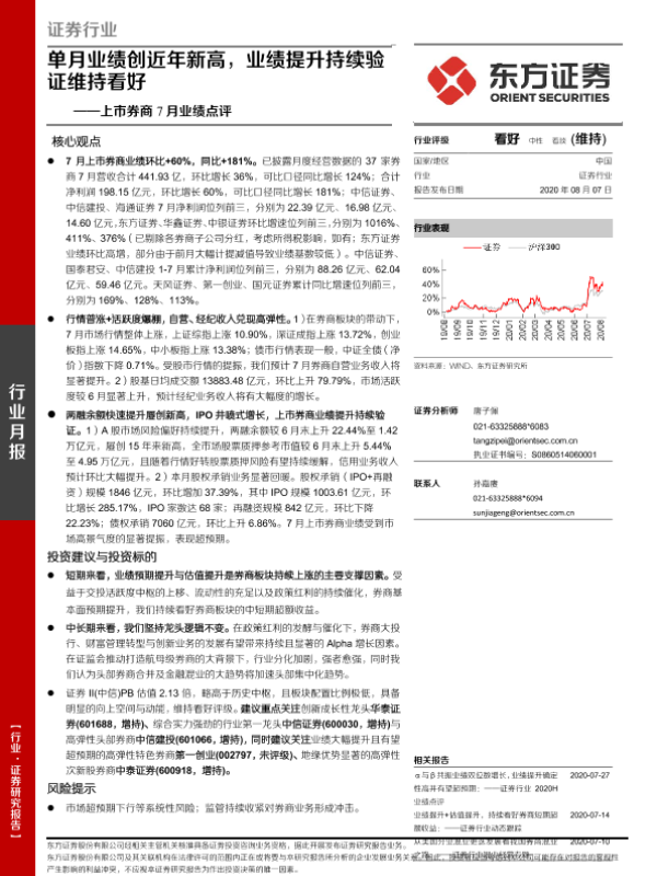 【东方证券】【20200807】证券行业月报:上市券商7月业绩点评:单月业绩创近年新高,业绩提升持续验证维持看好-6页