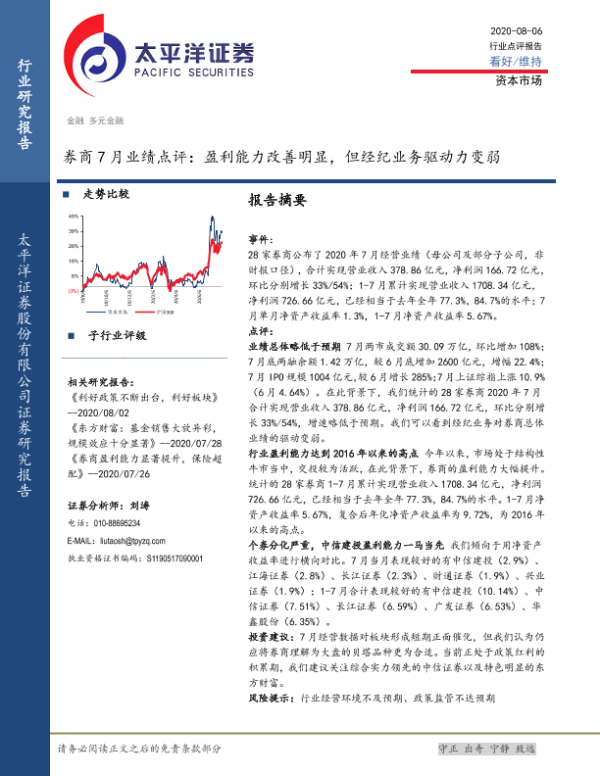 【太平洋证券】【20200806】券商7月业绩点评:盈利能力改善明显,但经纪业务驱动力变弱-5页