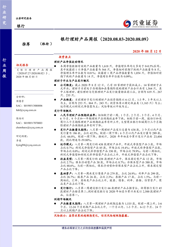 净值波动 市场概况 理财产品发行 银行理财 预期收益率