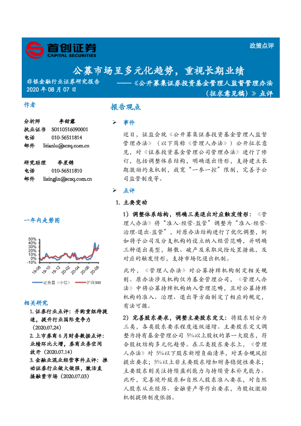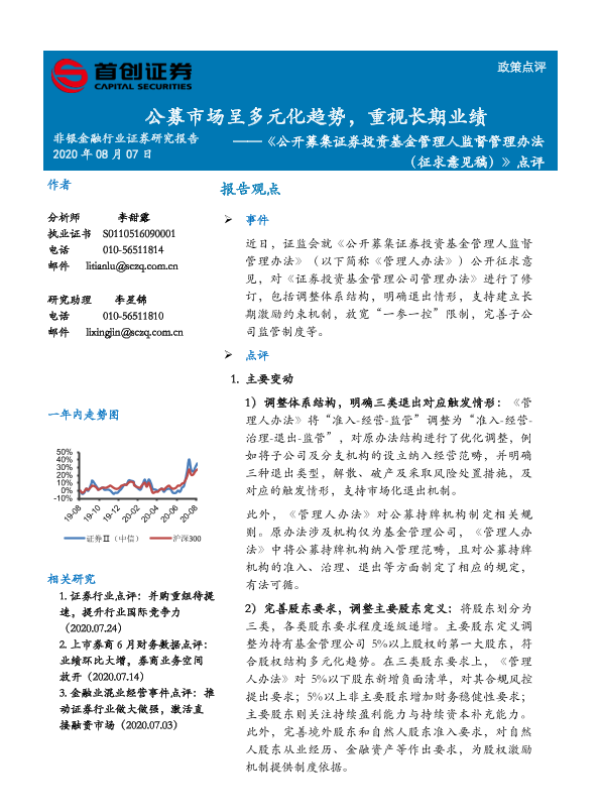【首创证券】【20200807】《公开募集证券投资基金管理人监督管理办法(征求意见稿)》点评-7页