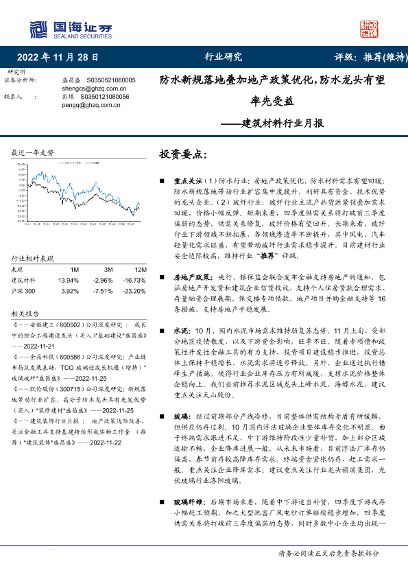 【国海证券】【20221128】建筑材料行业月报:防水新规落地叠加地产政策优化,防水龙头有望率先受益-15页
