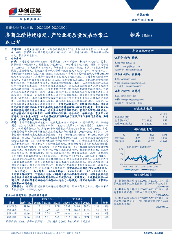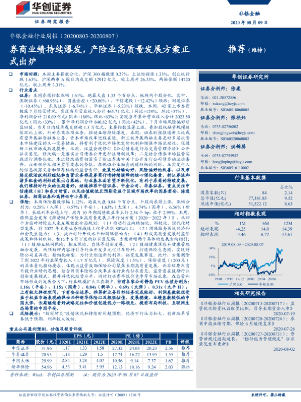 【华创证券】【20200809】非银金融行业周报:券商业绩持续爆发,产险业高质量发展方案正式出炉-16页