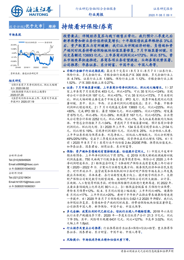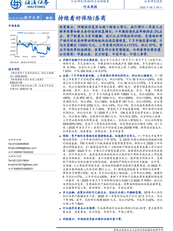 【海通证券】【20200809】综合金融服务行业周报:持续看好保险 券商-10页