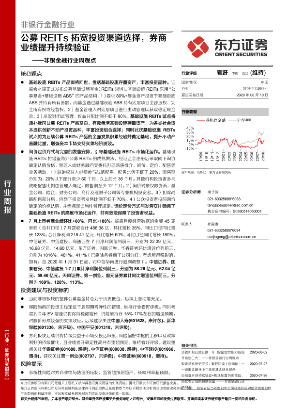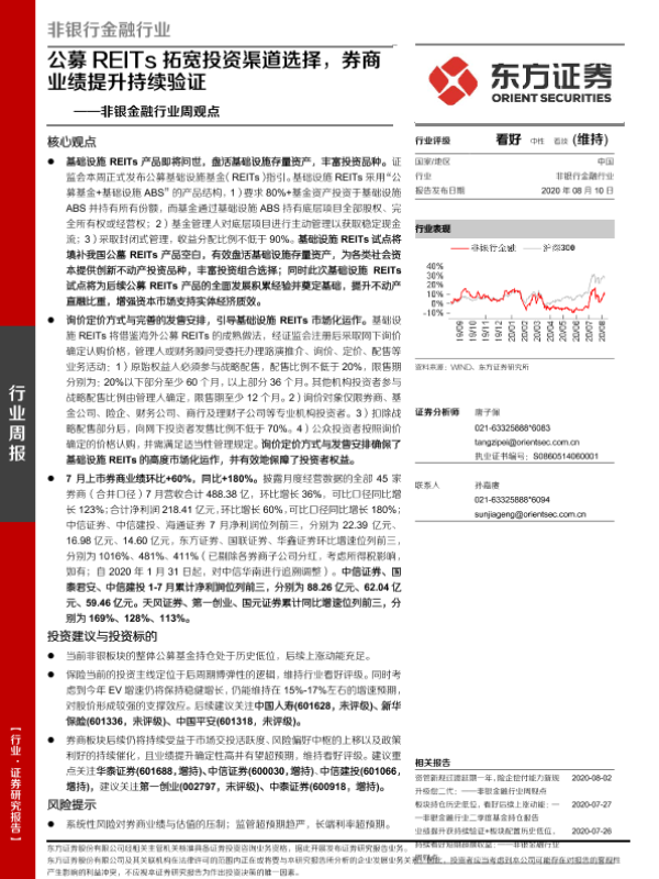 【东方证券】【20200810】非银金融行业周观点:公募REITs拓宽投资渠道选择,券商业绩提升持续验证-12页
