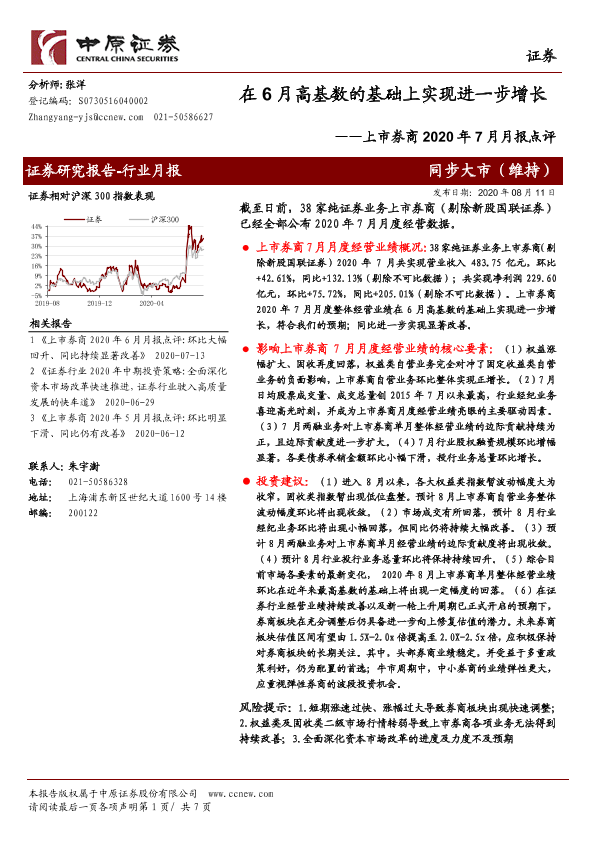 【中原证券】【20200811】上市券商2020年7月月报点评:在6月高基数的基础上实现进一步增长-7页