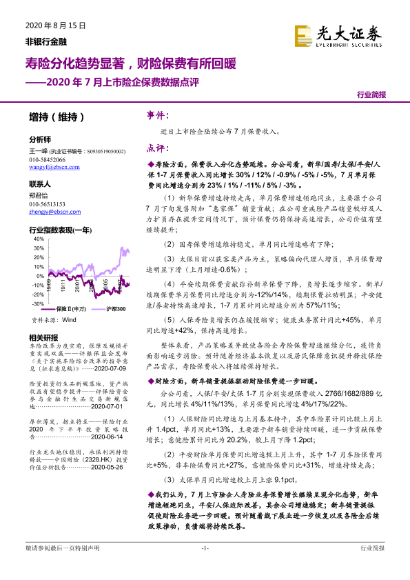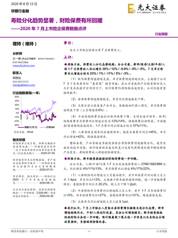 【光大证券】【20200815】2020年7月上市险企保费数据点评-3页