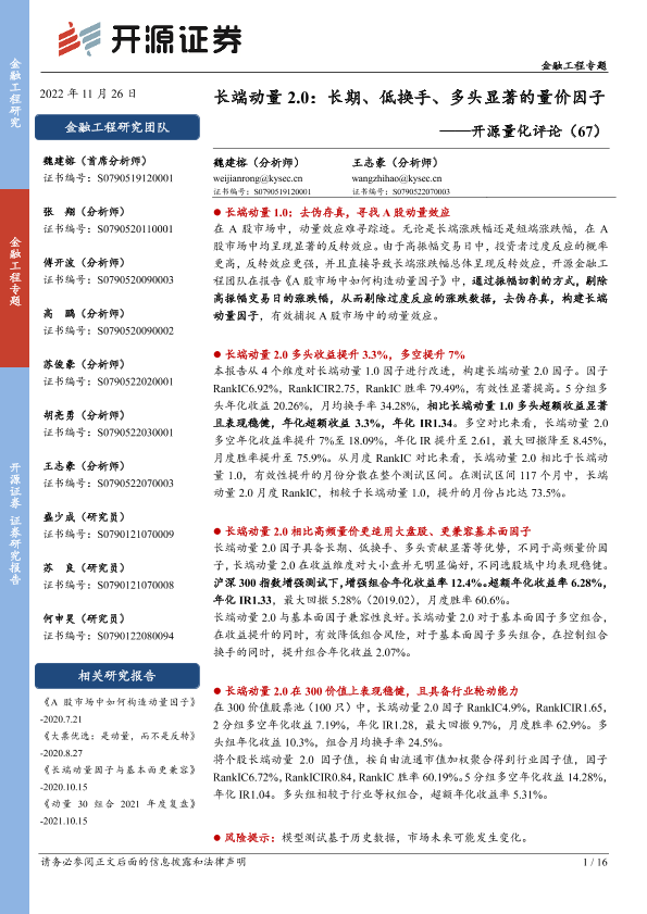 【开源证券】【20221126】长端动量2.0:长期、低换手、多头显著的量价因子-16页
