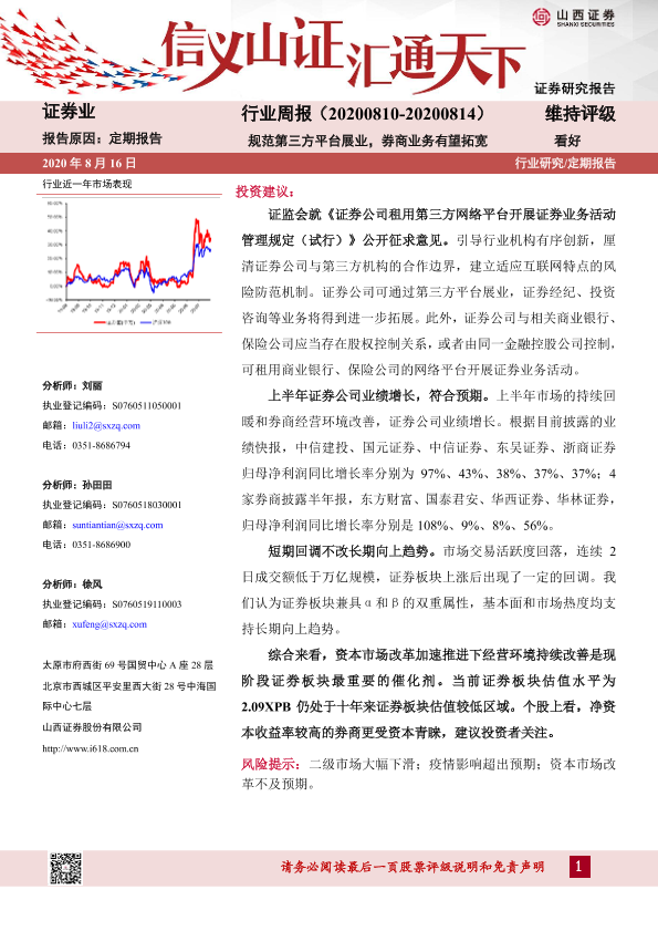 【山西证券】【20200816】证券业行业周报:规范第三方平台展业,券商业务有望拓宽-9页