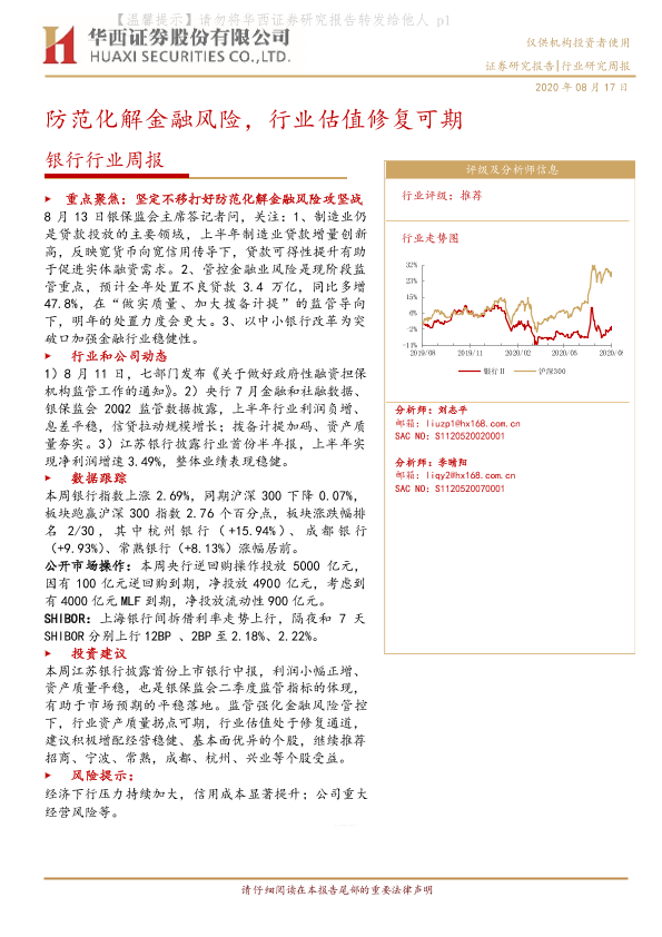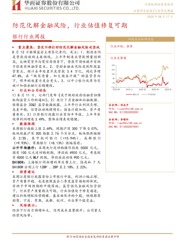 【华西证券】【20200817】防范化解金融风险,行业估值修复可期-8页