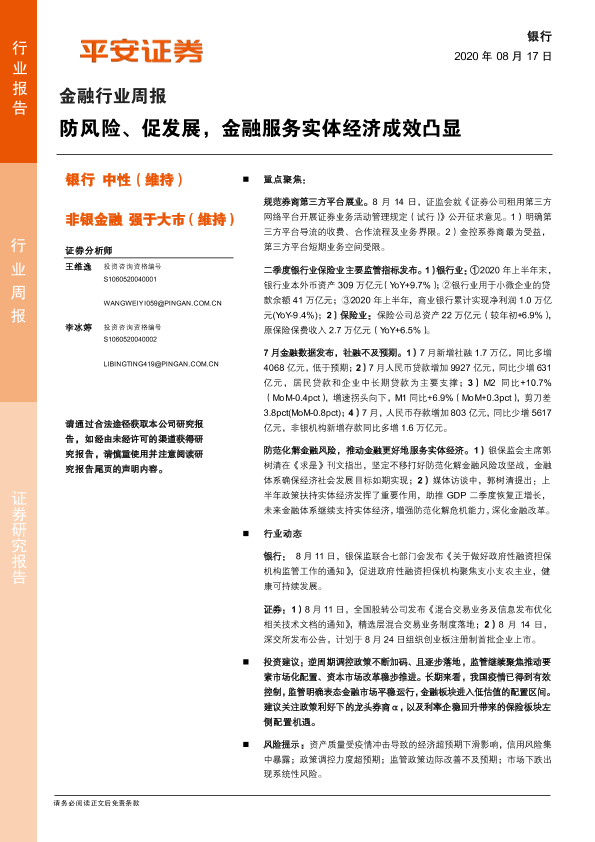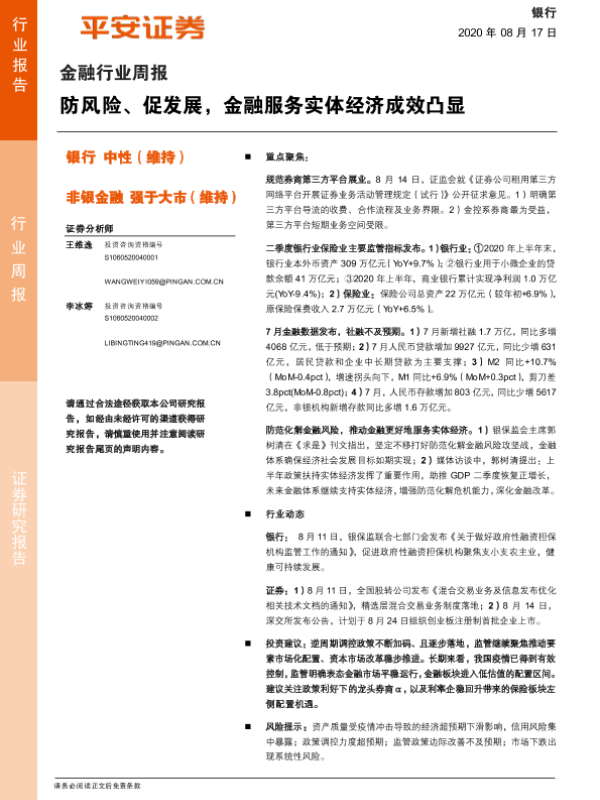 【平安证券】【20200817】防风险、促发展,金融服务实体经济成效凸显-10页