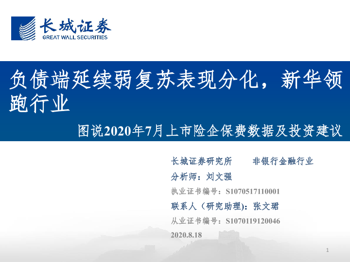 【长城证券】【20200818】图说2020年7月上市险企保费数据及投资建议-31页