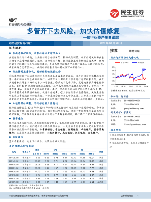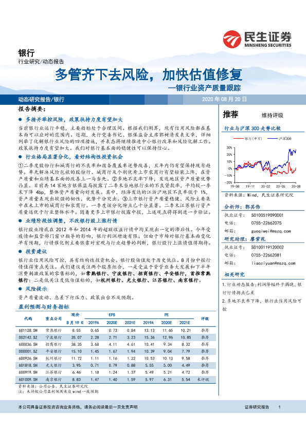 【民生证券】【20200820】银行业资产质量跟踪:多管齐下去风险,加快估值修复-12页