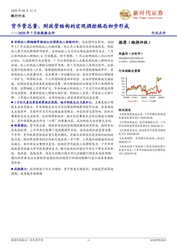 【新时代证券】【20200821】银行行业2020年7月政数据点评:货币管总量,财政管结构的宏观调控格局初步形成-10页