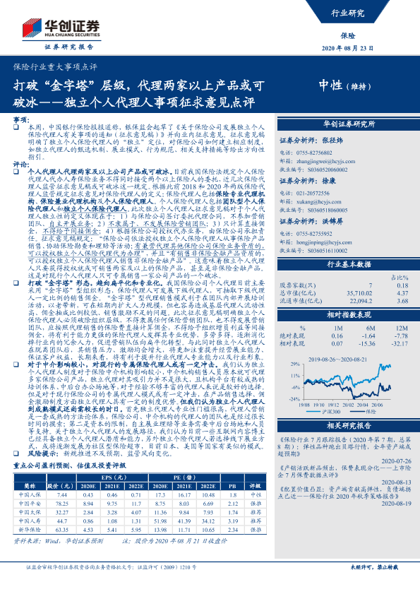 【华创证券】【20200823】保险行业重大事项点评:独立个人代理人事项征求意见点评-4页