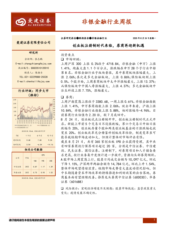 【爱建证券】【20200824】非银金融行业周报:创业板注册制时代来临,券商再迎新机遇-11页