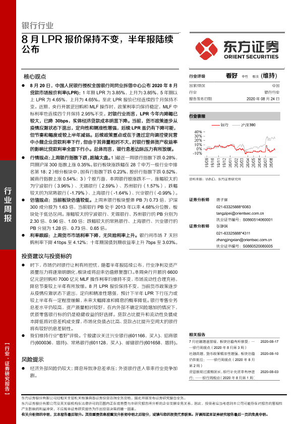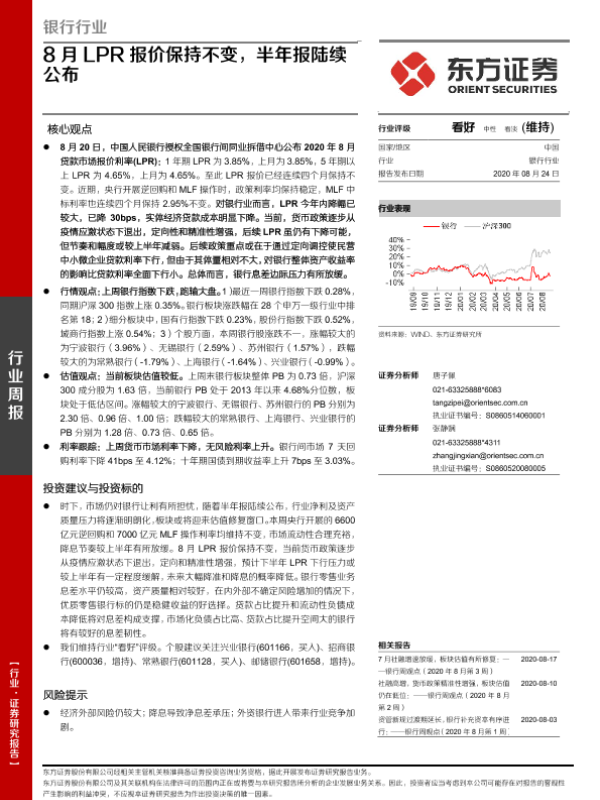 【东方证券】【20200824】8月LPR报价保持不变,半年报陆续公布-16页