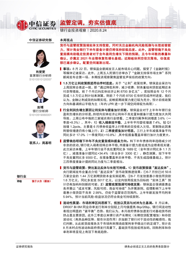 【中信证券】【20200824】银行业投资观察:监管定调,夯实估值底-10页