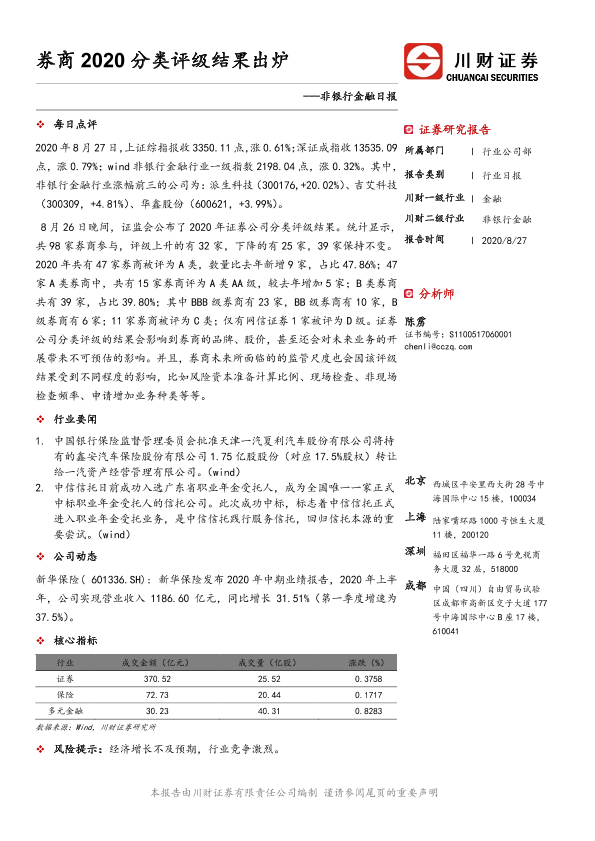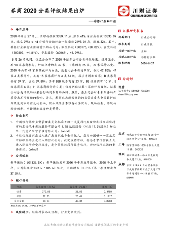 【川财证券】【20200827】非银行金融日报:券商2020分类评级结果出炉-2页
